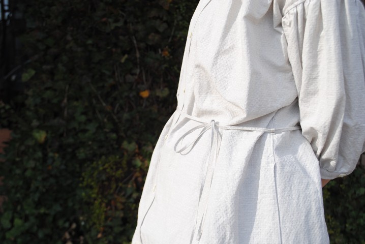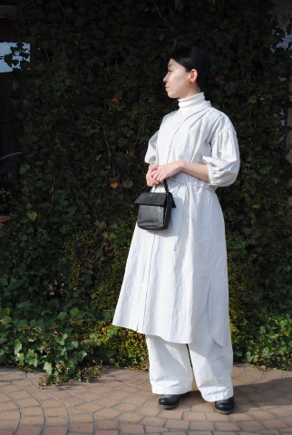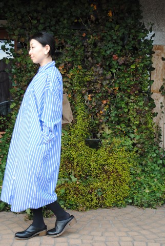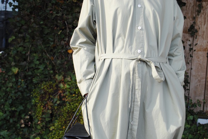 ハリのある生地とたっぷりめの生地量、贅沢なシャツワンピースです。