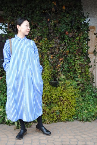 ブルーストライプが目を惹くシャツワンピースは プリット から。