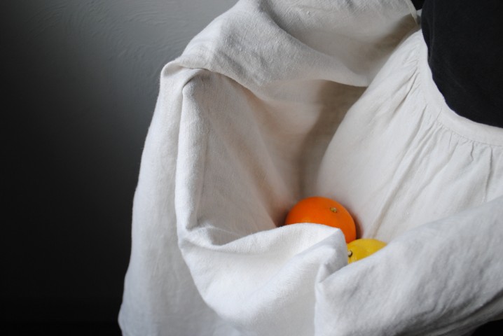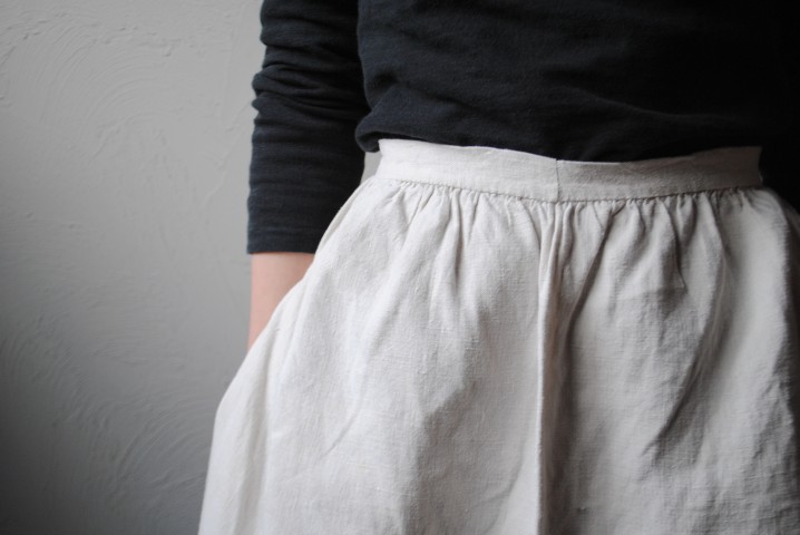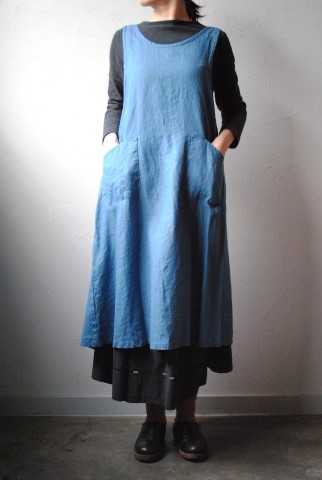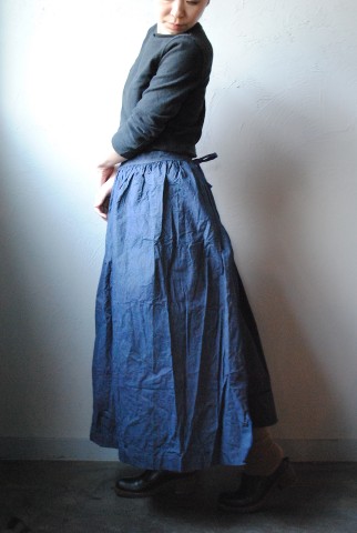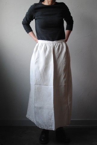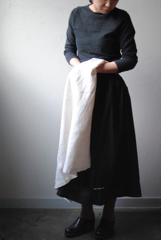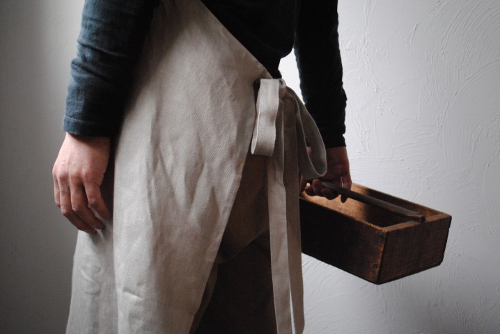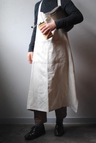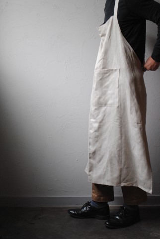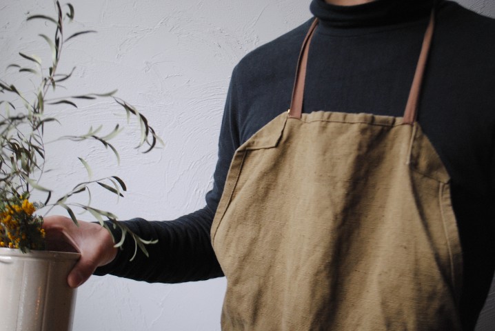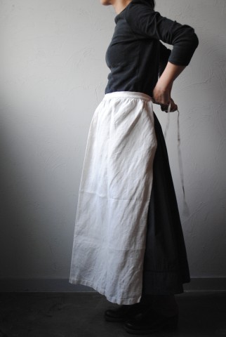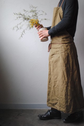 こちらも同じくしっかりと寄せられたギャザーが素敵なリネンのエプロン。