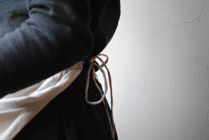 腰下で紐で結ぶギャルソンタイプのエプロン。