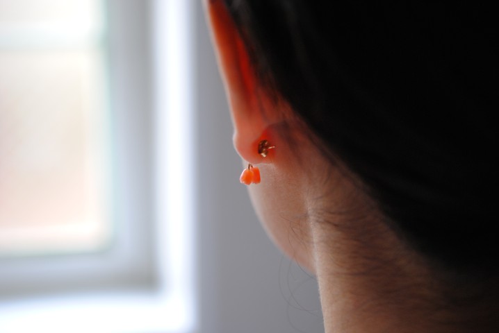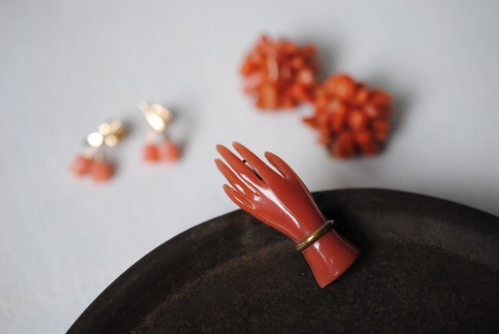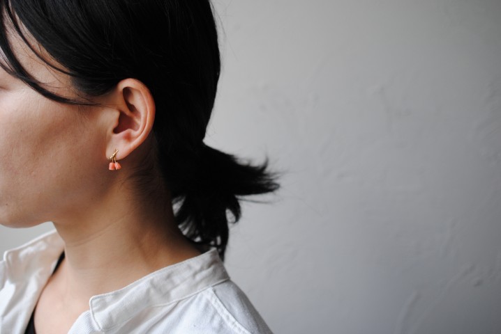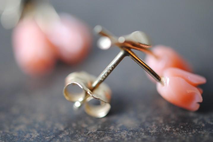 チューリップを形どった愛らしいピアスはコーラル(珊瑚)でできています。