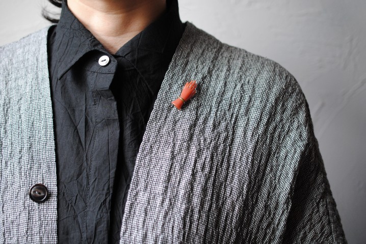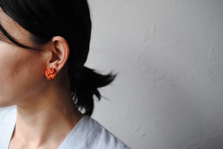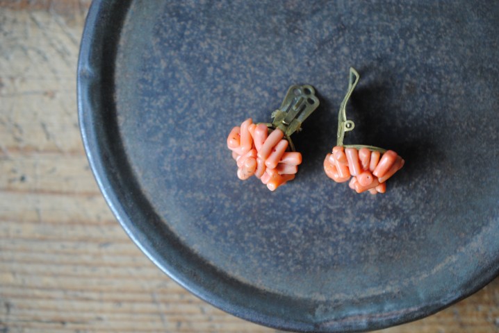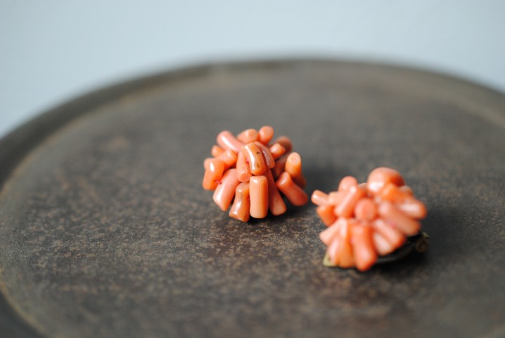 珊瑚らしいごつごつとした表情のイヤクリップ。