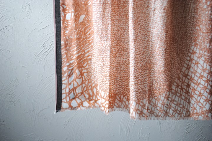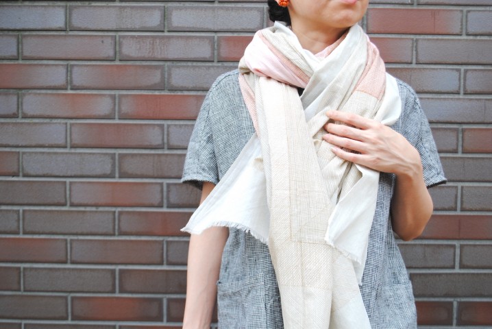 細かな線で色のグラデーションを描いた大判のストール。