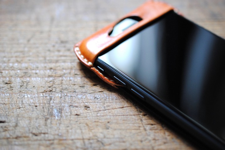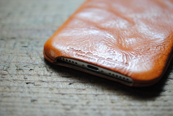 iPhoneを纏う様に包み込むデザインは、iPhoneの操作性を損なわぬよう極限まで革の厚みを調整して仕上げられています。