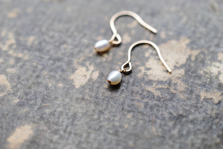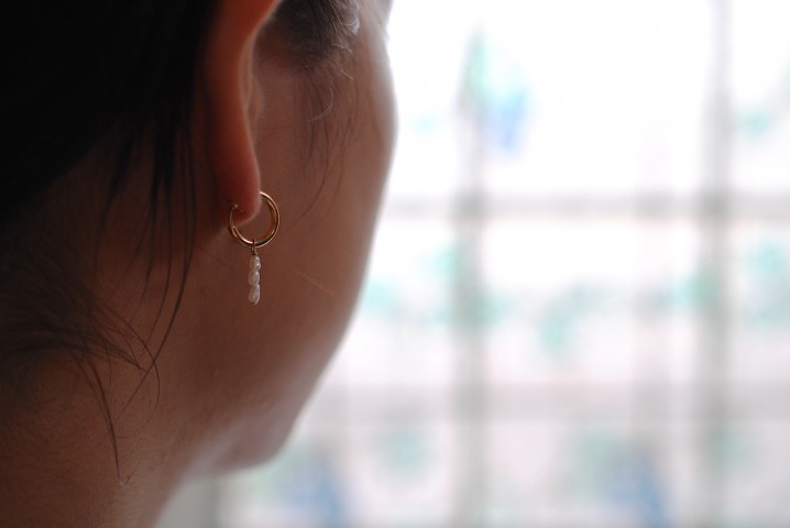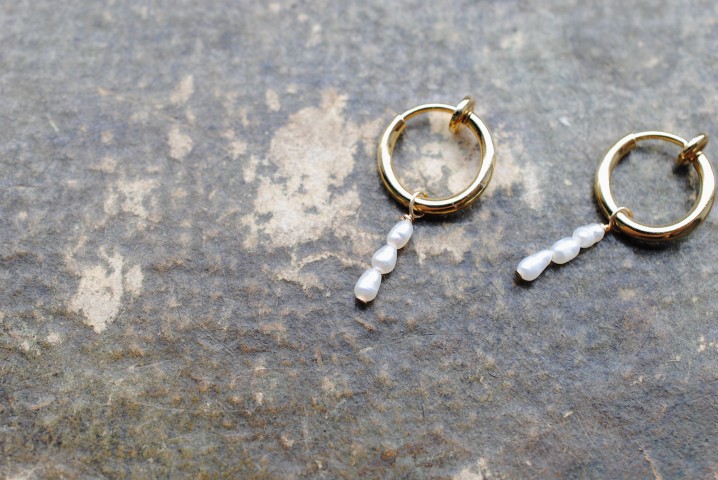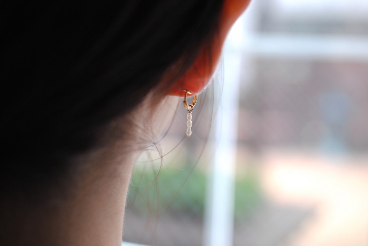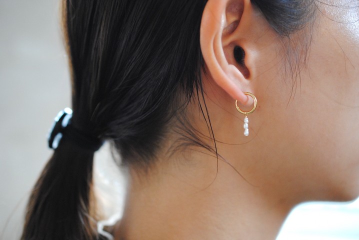 secondo emme たてに3つ並んだパールのフープイヤリング
