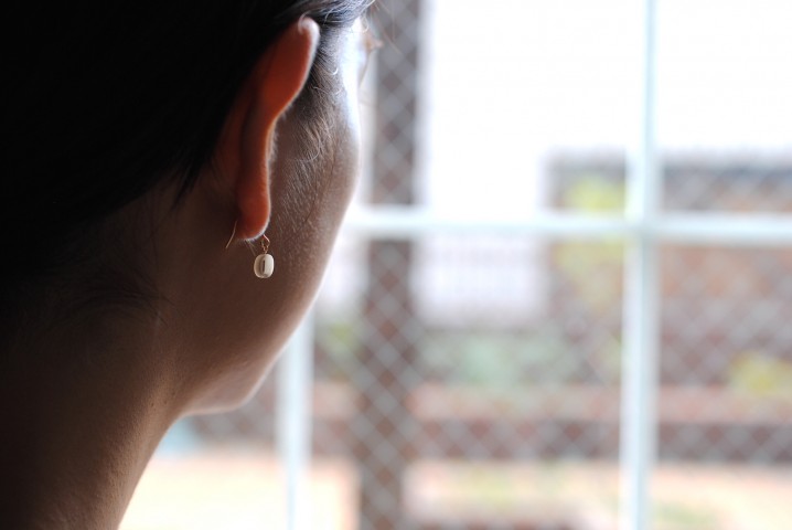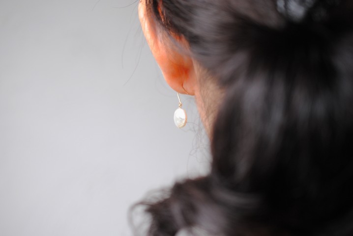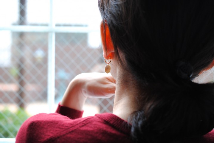 ピアスよりもフープが太い分、このオーバルが野暮ったさを消してくれます。
