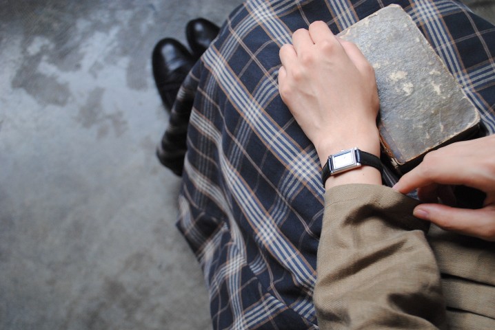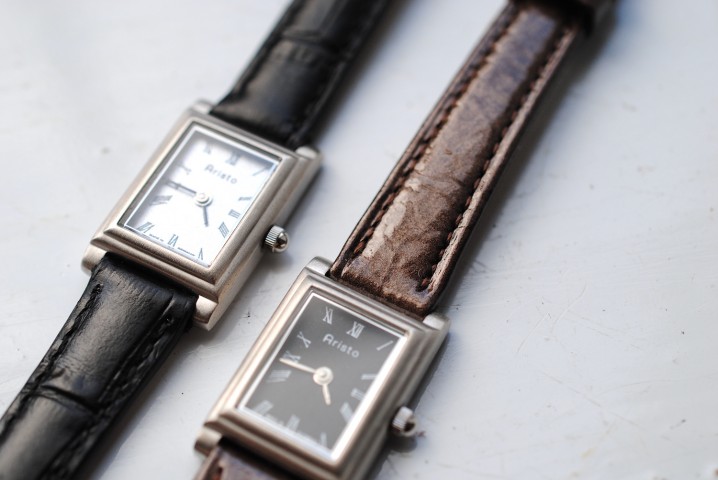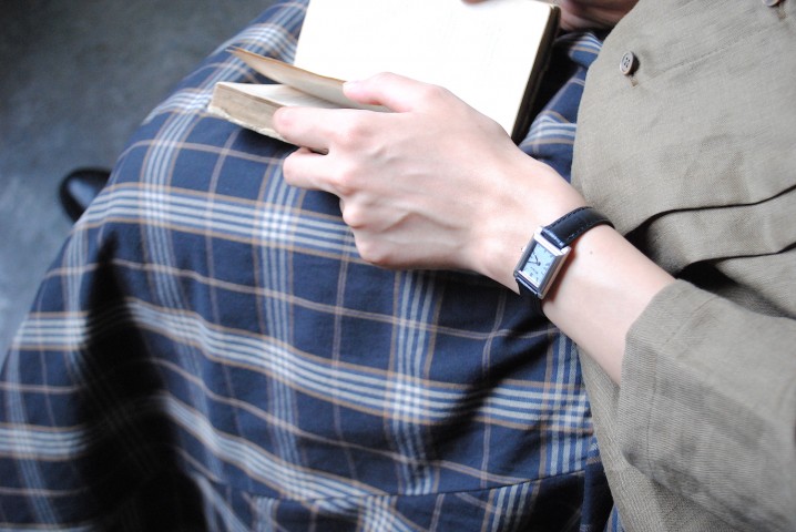 丸みのある文字盤が多い中、珍しい長方形のモデルです。