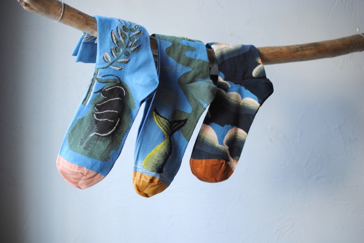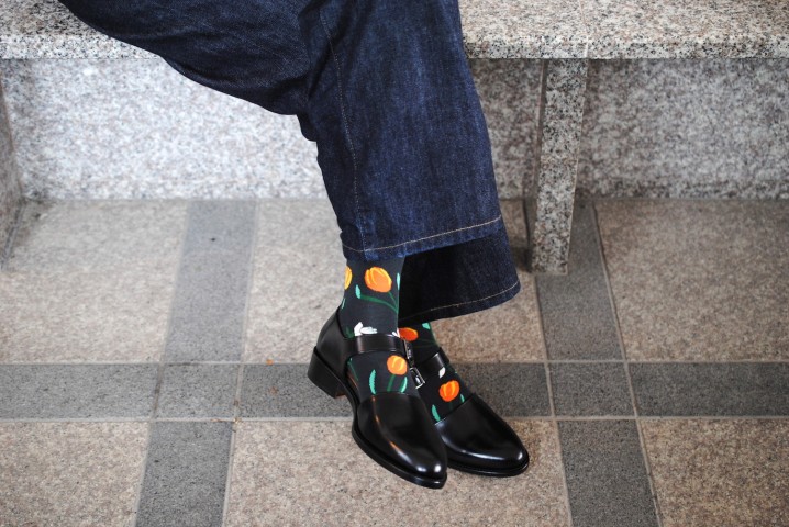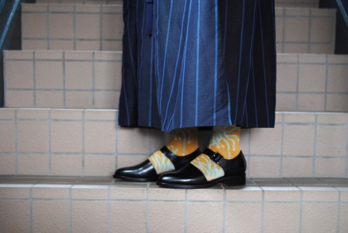 履く靴によって見え方が変わる、楽しい靴下。