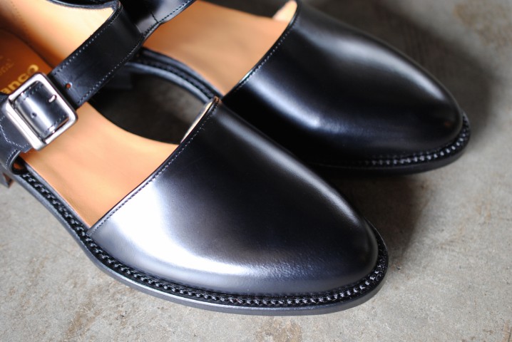 ワックスポリッシングで仕上げられた、パンプスのようなレザーシューズは