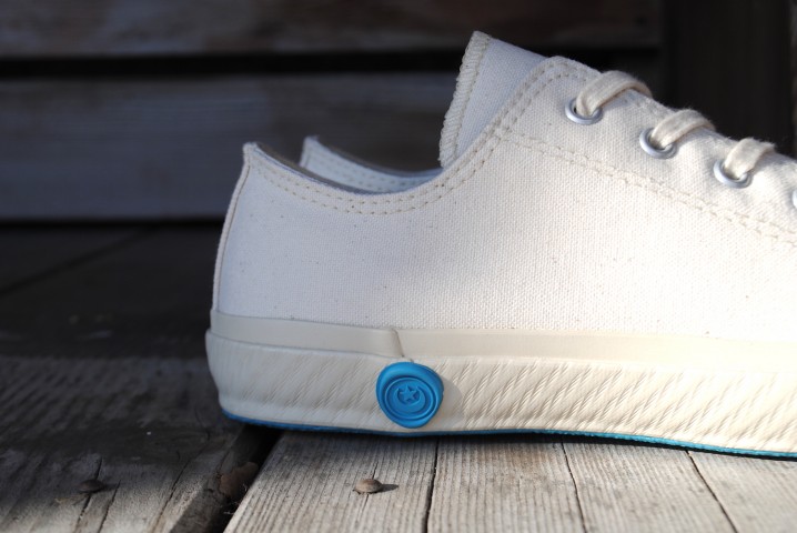アウトソールとロゴの水色が、鮮明に映える一足です。