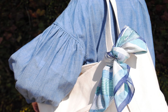巻いた時の印象がガラリと変わるのもスカーフの楽しみのひとつですね。