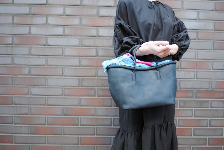 口の広いバッグの目隠しのように。