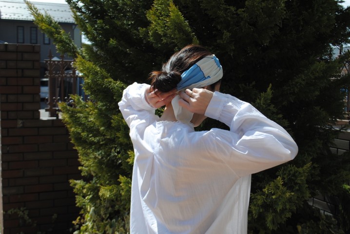 くるくるとたたみ込んでヘアバンドのように。