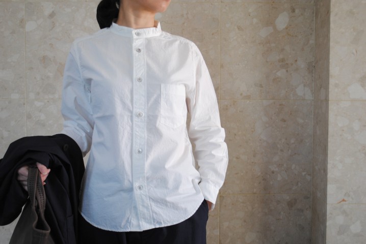 ドレスシャツ仕立てでシンプルなデザインは、いろんなボトムと相性が良く、