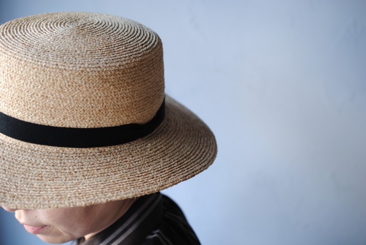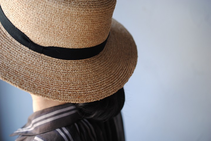 ラフィア素材のカンカン帽子。