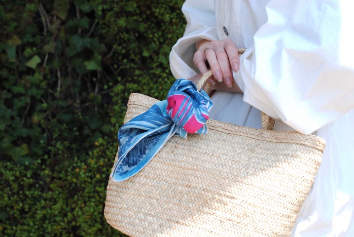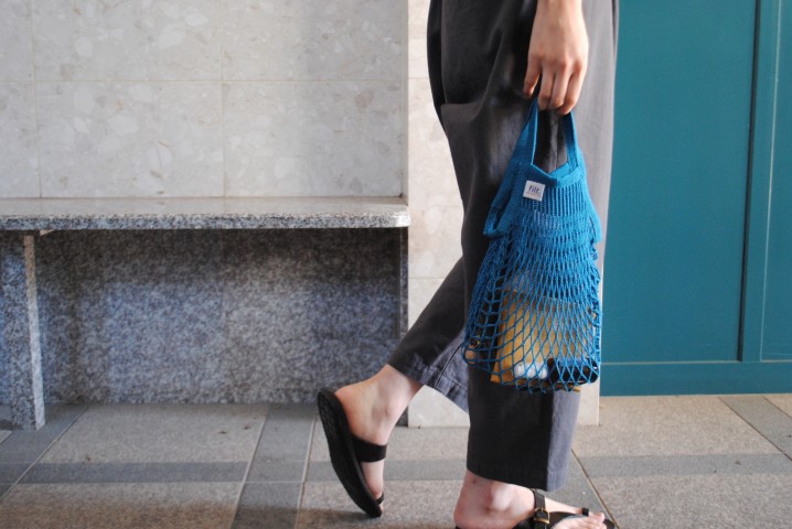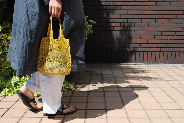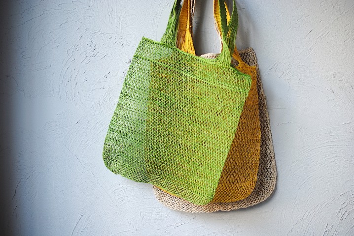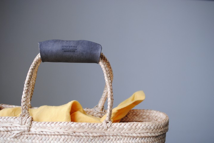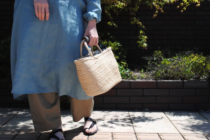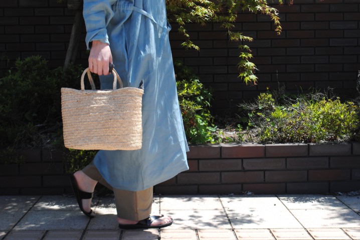椰子の葉から作られた艶感のあるカゴバッグ。