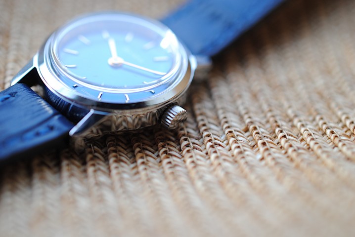 文字盤には1970's 頃のデッドストックパーツが使用されたリメイク時計。