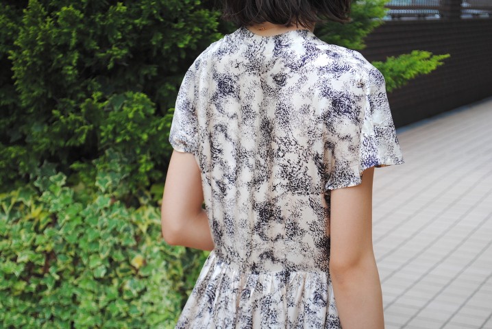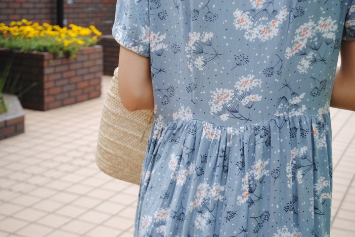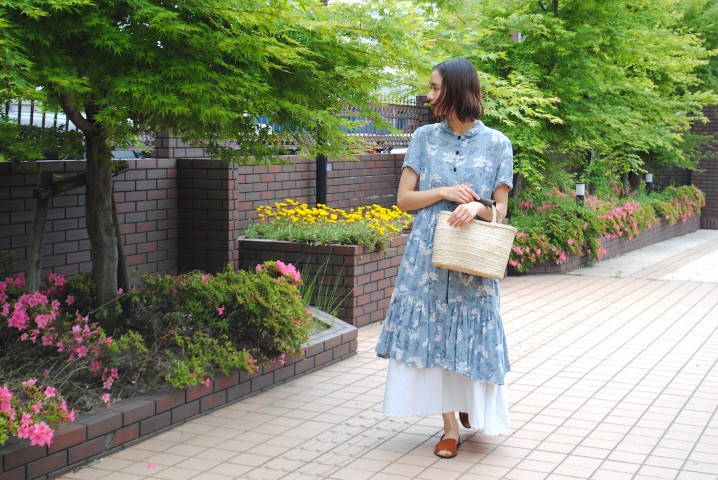 レーヨン素材ならではのドレープ感とティアードデザインに、花々が散りばめられたロマンティックな一枚です。