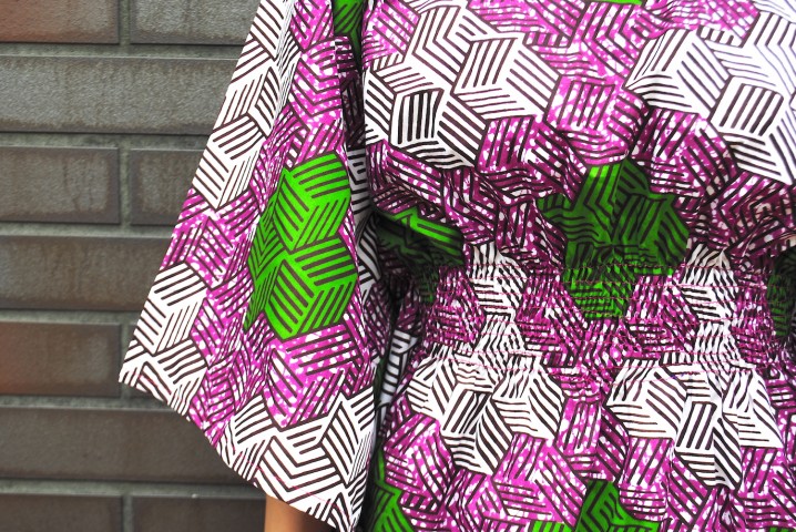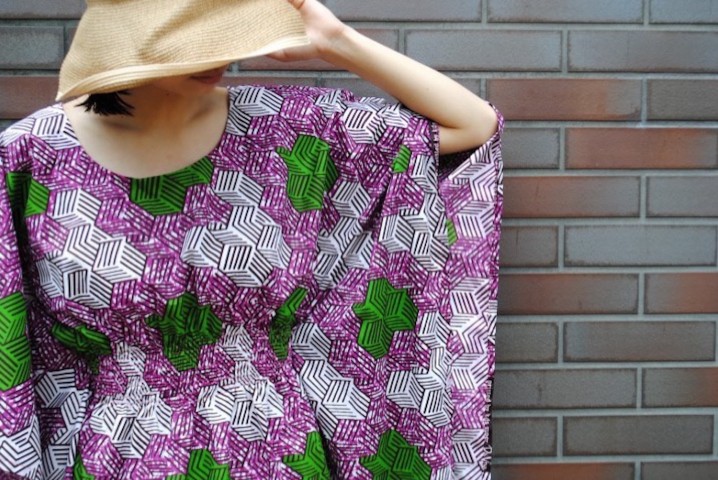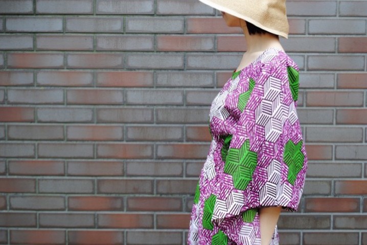 シンプルな作りですが、大きく開いた袖口から裾にかけて平行に、20センチ程内側が縫われた簡易的な作りです。