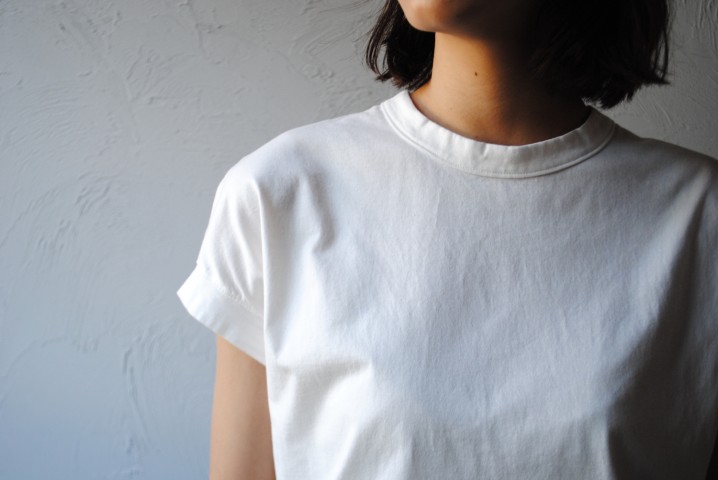 肩が少し落ち、Tシャツの袖をくるっと一折したような
