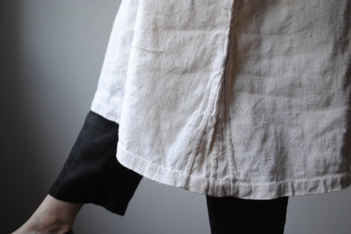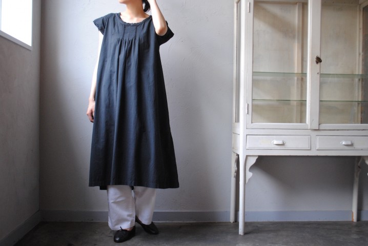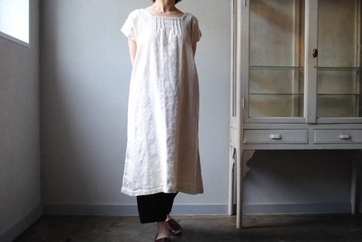フランスにて仕立てられたリネン地のワンピース。