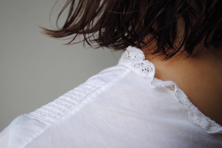 首元と袖口には少し歪なフリル。