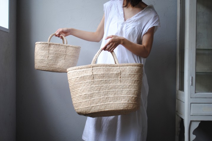 ヤシの葉で編まれた大きめなカゴバッグも。