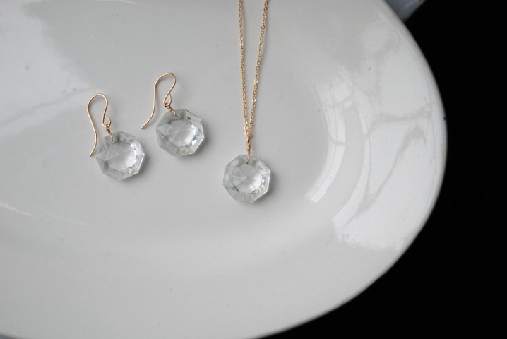 オクタゴンカットされた1920年代のシャンデリアパーツを
