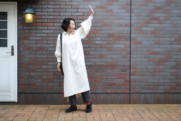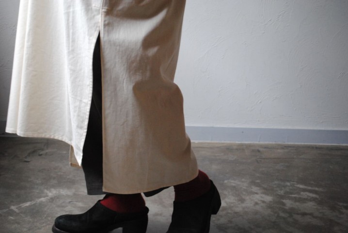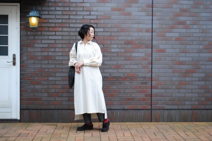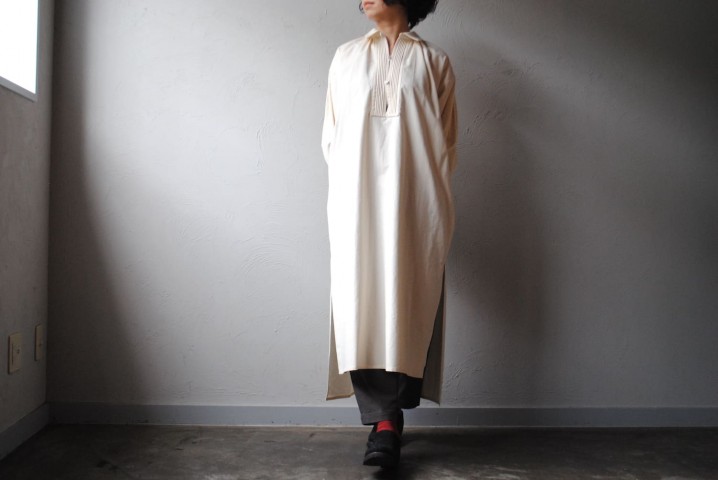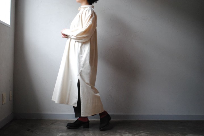 深めのサイドスリットが絶妙な、コットンワンピース。