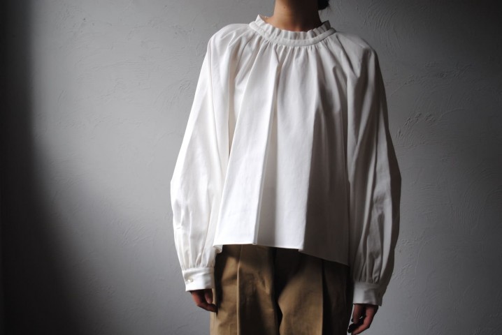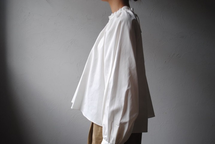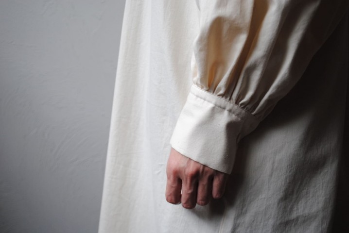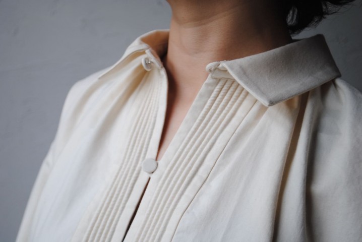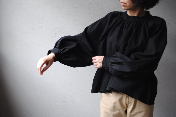 肩まわりのギャザーや袖山のプリーツがクラシカルな印象です。