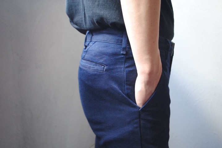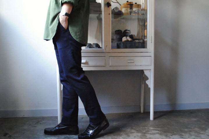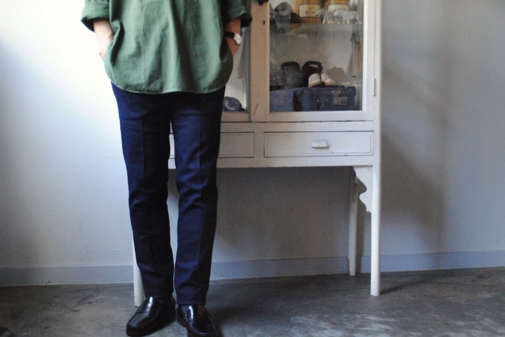 フレンチワークパンツのまっすぐをベースにスリムシェイプした形です。