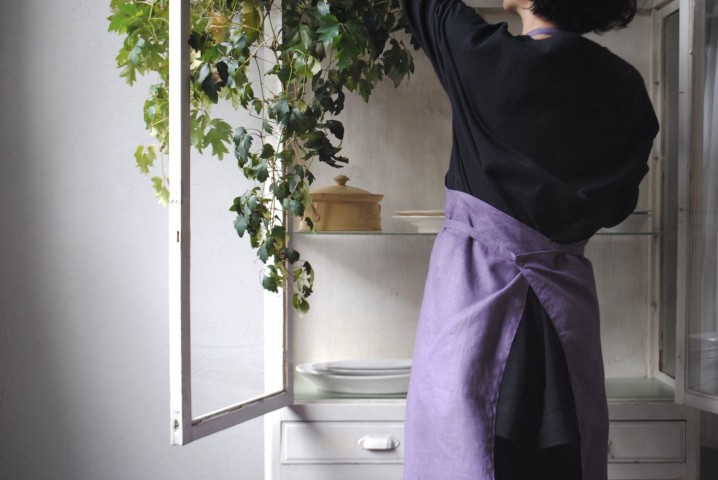 たっぷりの着丈が、お料理から洗い物まで
