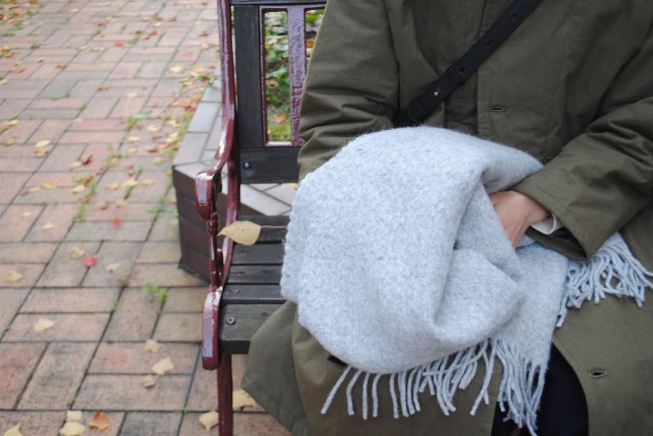 車の中ではひざ掛け、外へ出る時は羽織として。