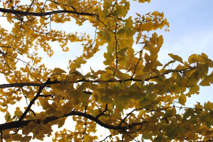 黄色く色づいたイチョウの葉がちらほらと散り始めました。
