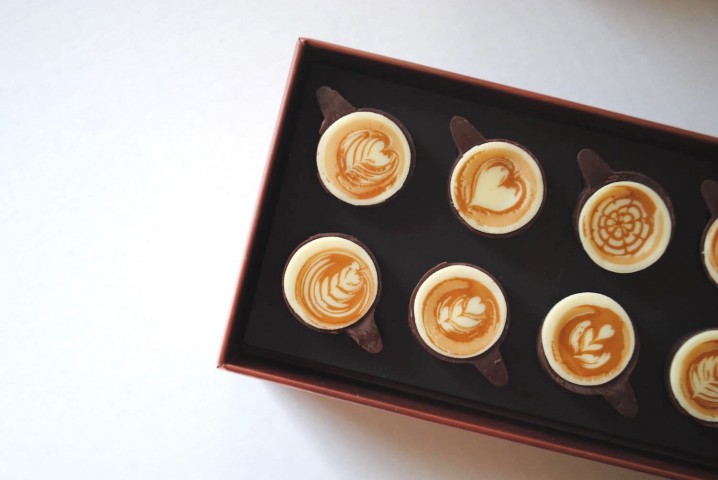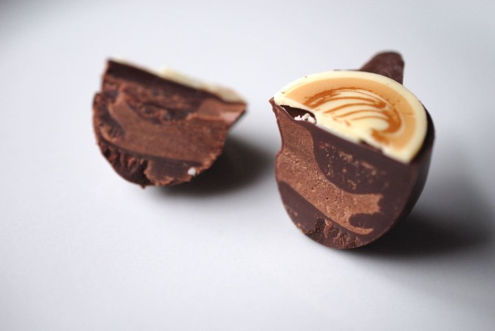 ガナッシュが詰めこまれたカプチーノショコラ。