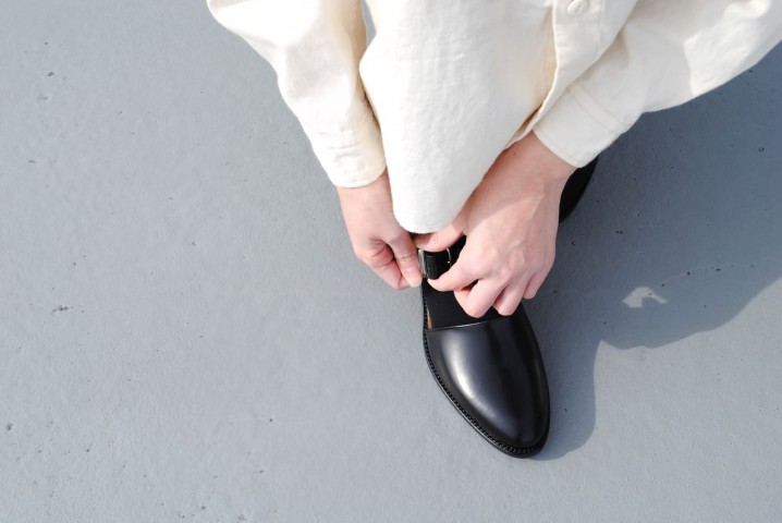 サイドオープンのデザインは靴下とのコンビネーションがとても楽しく、