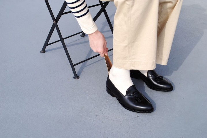 ただのローファーとは違ってコーディネートにきれいな線を作ってくれる印象。