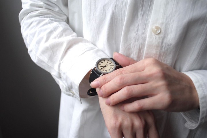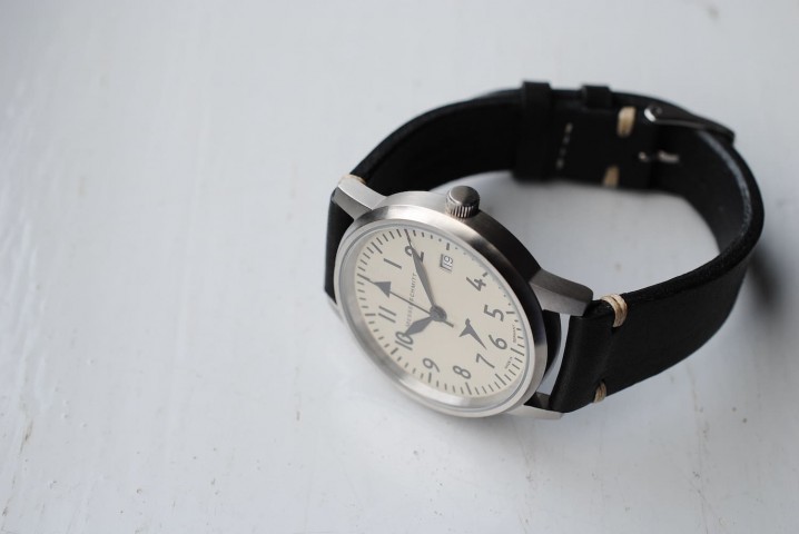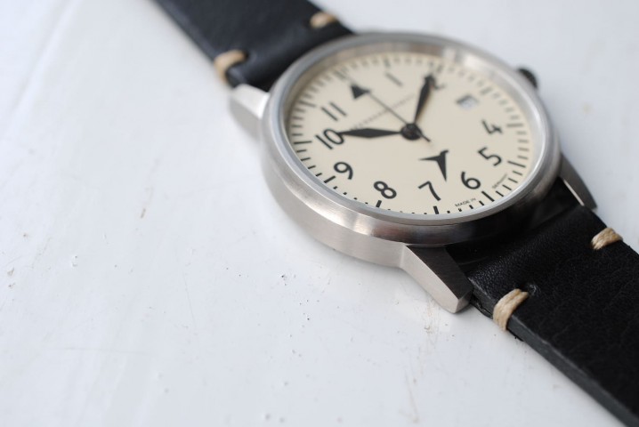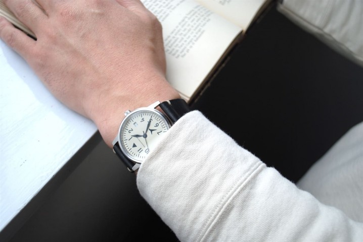すっきりとした印象に文字盤のアイボリーカラーが相反して