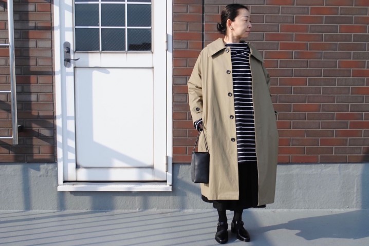 シンプルなステンカラーコートながら、