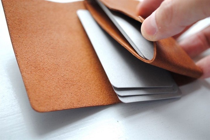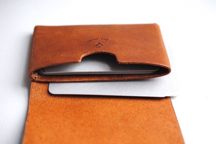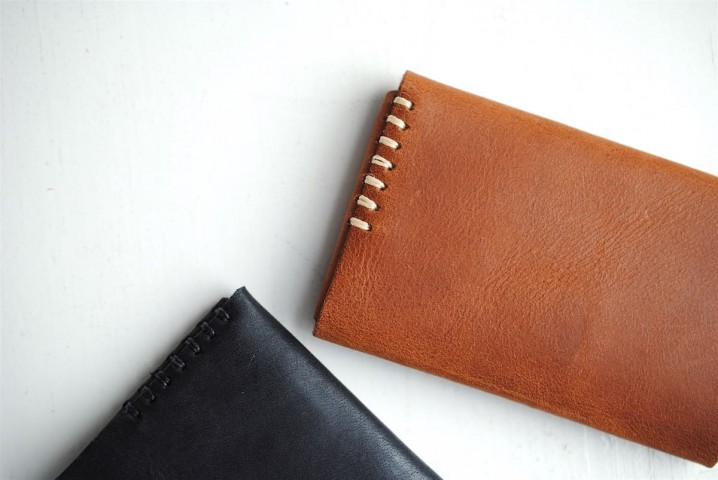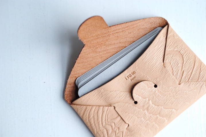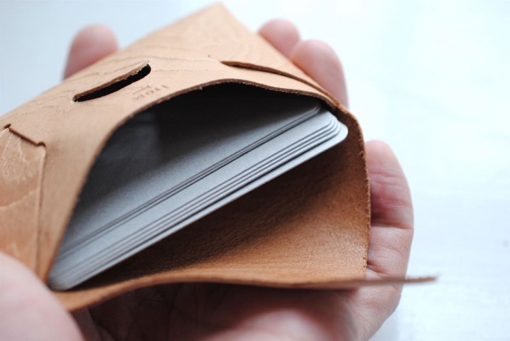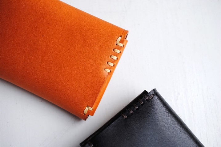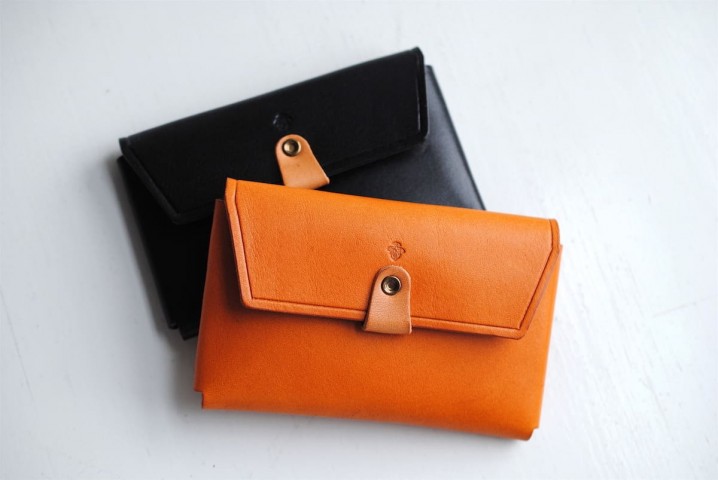 一枚の革を縫製せずに折り込んで組み立てた、シンプルなモデル。