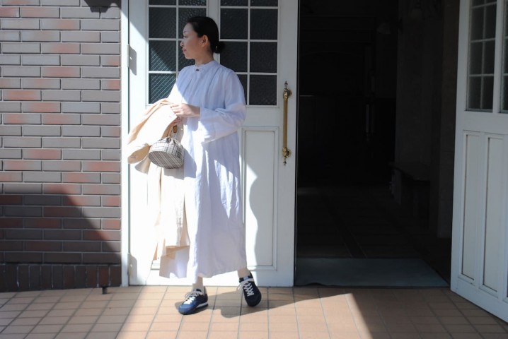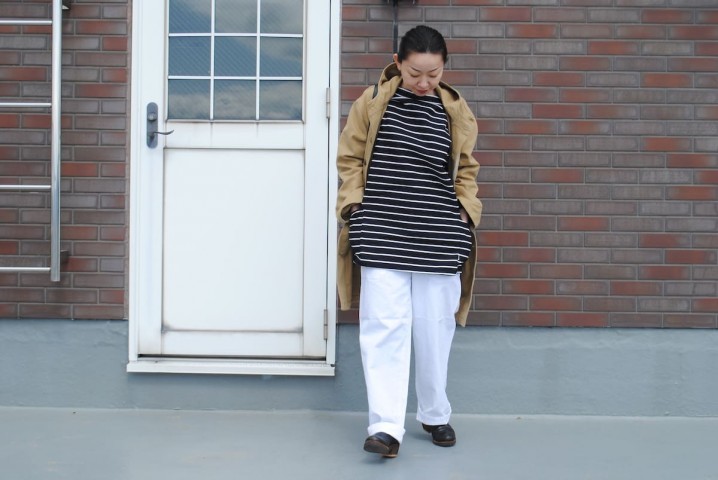 生成りにネイビーはやっぱり重宝。