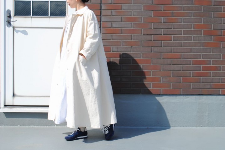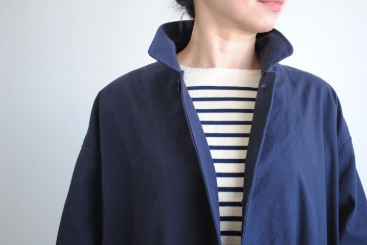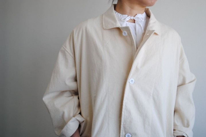 ヤーモのコートは裏地のない中地のコットン。