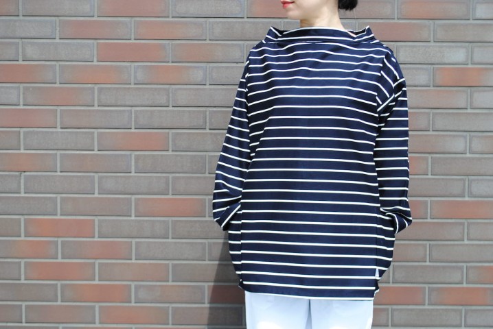 色違いのネイビーにはマリンルックでボーダーをチョイス。