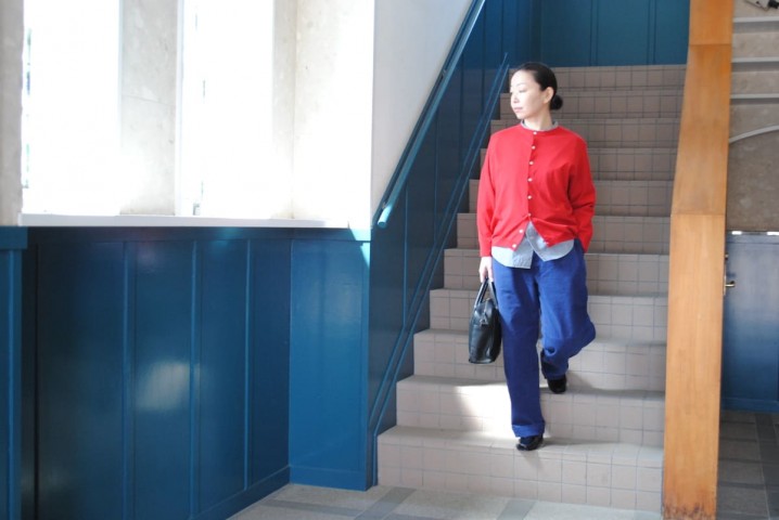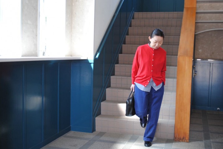 ドイツワークブルーに赤の差し色。