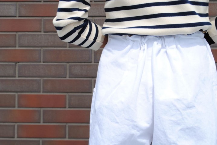 ウエストの紐ベルトを、ぎゅっと絞って履くのですが