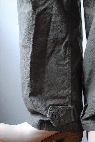 裾に付いたボタンでさらに細くも絞る事が出来ます。