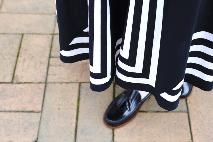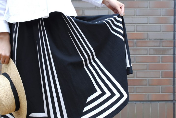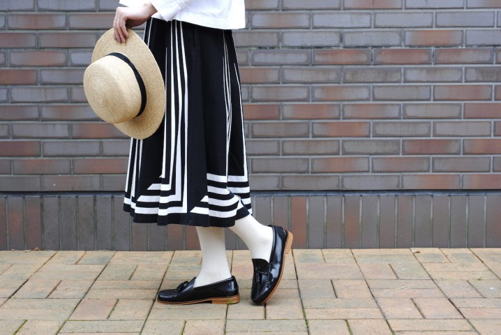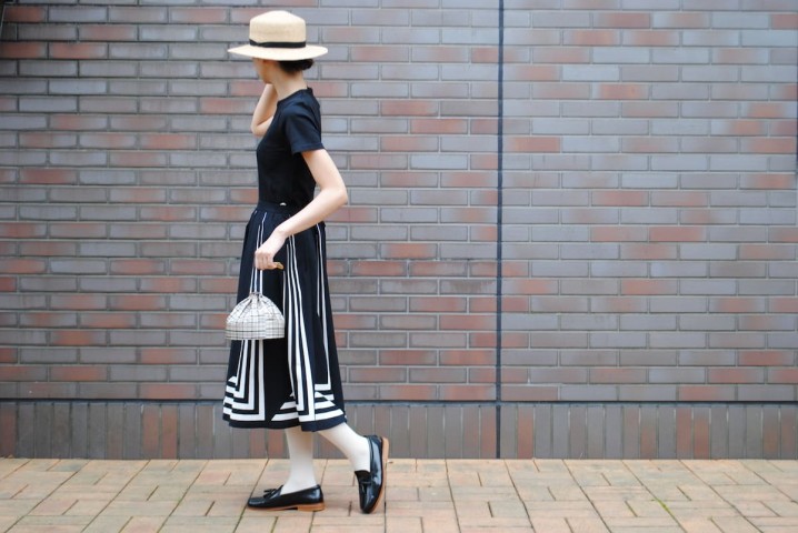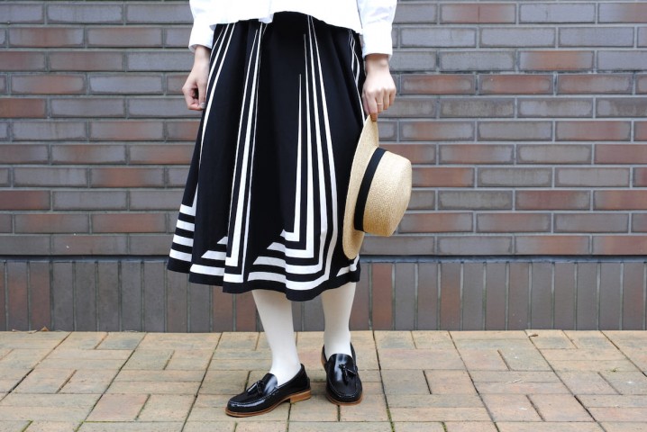 トップスを黒にすると白のラインがぐっと引き出て見えます。