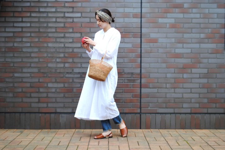 梅雨入り前のこの季節に想像しやすい、さらっとしたコーディネート。