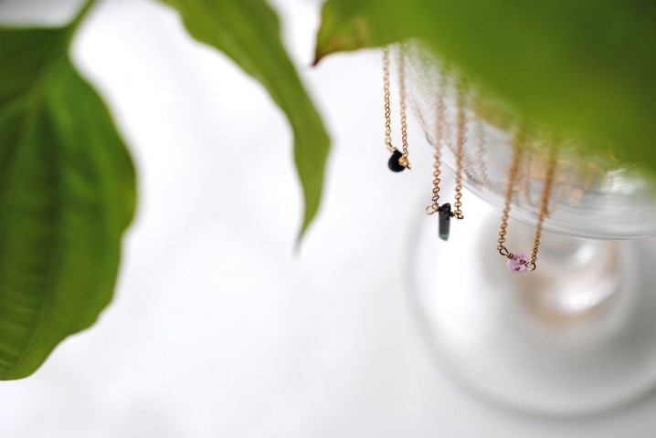 そして、ネックレスは色味のあるものから。