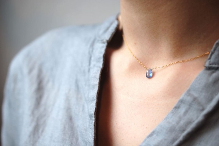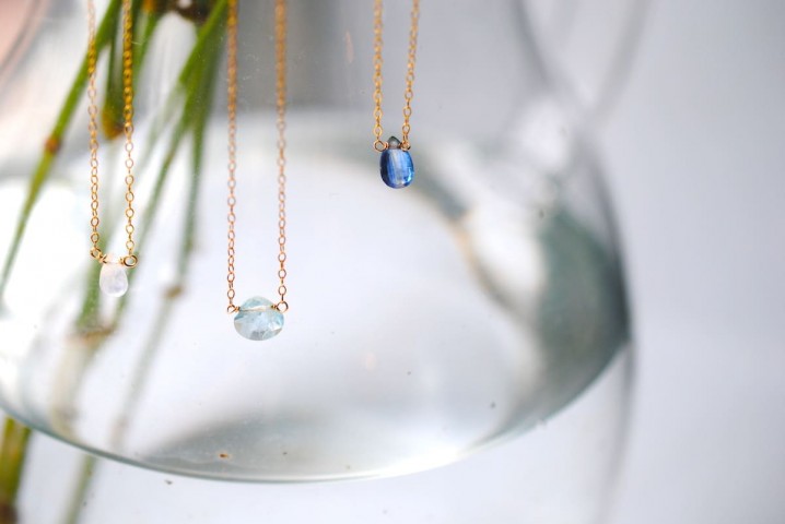 一滴の雫のような瑞々しさのあるカイヤナイトネックレス。
